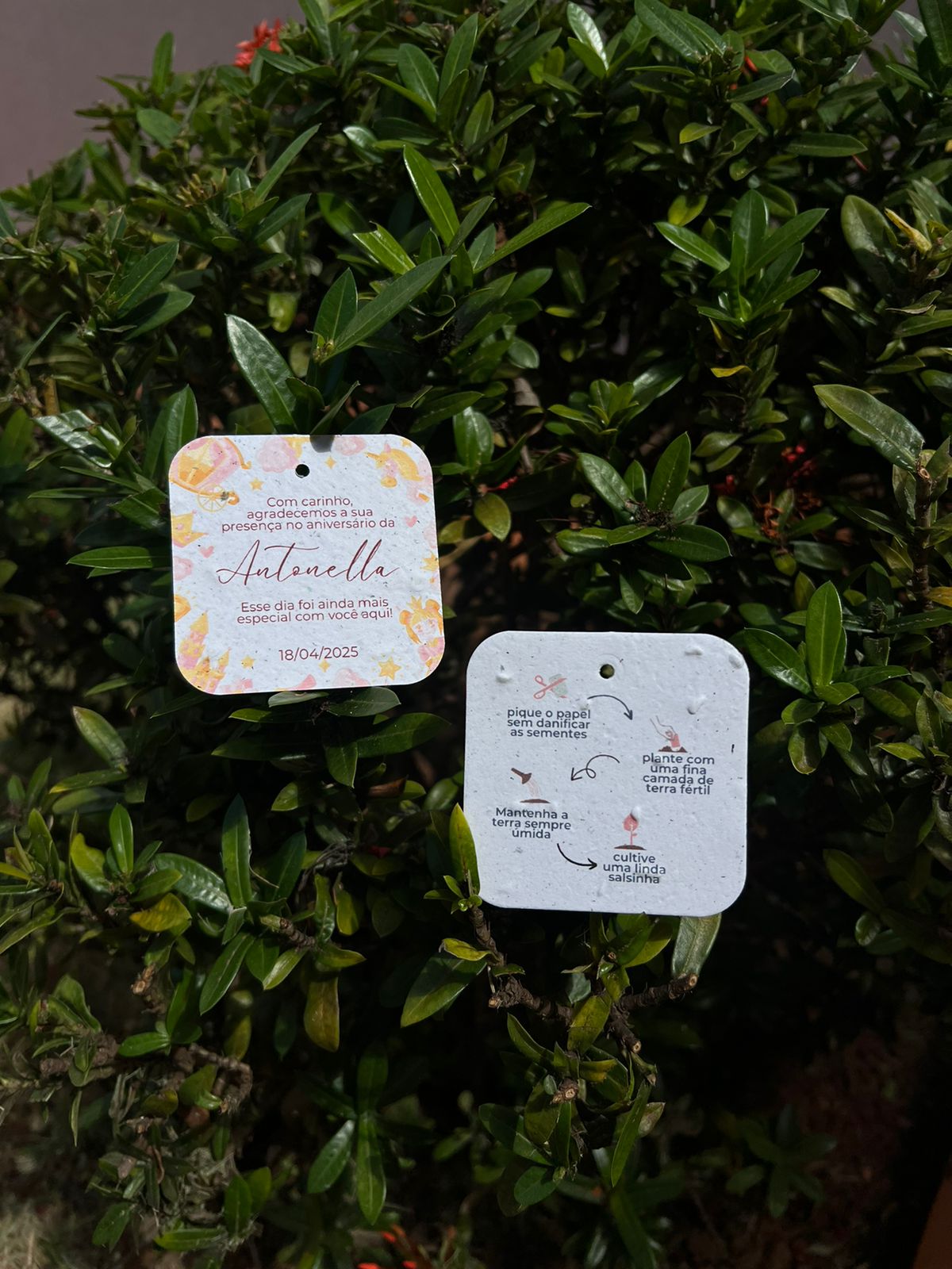 - a impressão é feita em impressoras jato de tinta com a qualidade fotográfica, para que a arte final fique extremamente detalhada em suas linhas e cores. Além disso, a tinta é a base d’água, não agride o meio ambiente ou a futura plantinha